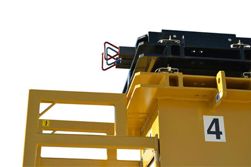 Electronic sensors notify the operator of the engagement status of each wedge to ensure its disengagement from the boom section. In the event of a sensor failure, an override is standard to allow continuing operations until proper repairs can be made.
